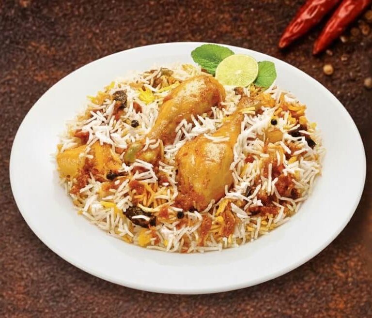 RIZ BASMATI PARFUMÉ AUX ÉPICES, RAISINS ET AMANDES, GARNI DE VIANDE OU DE LÉGUMES AUX SAVEURS AUTHENTIQUES.
